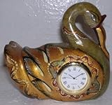 .../ Swan Stone Clock Handpainted Gold & Green / Gold Clocks
